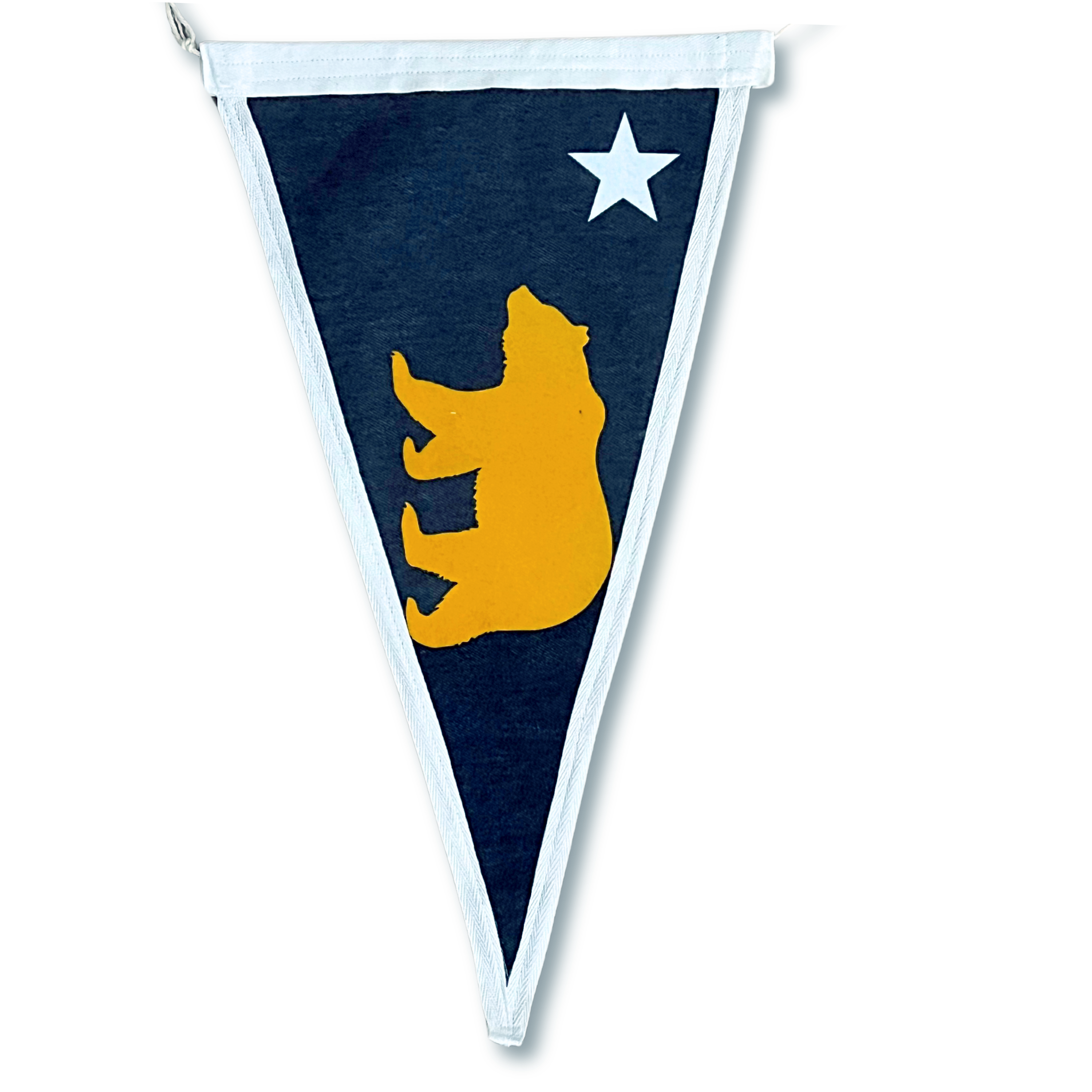 Celebrate the iconic spirit of California with this handcrafted California Republic Pennant Flag. Featuring a bold silhouette of the state’s famous bear and a striking red star, this flag captures the essence of the Golden State. Made from durable denim it’s perfect for hanging indoors or out, whether you're decorating your beach house, home office, or surf shack. Inspired by the laid-back vibes of the West Coast, this pennant is a timeless addition to any California lover's decor.