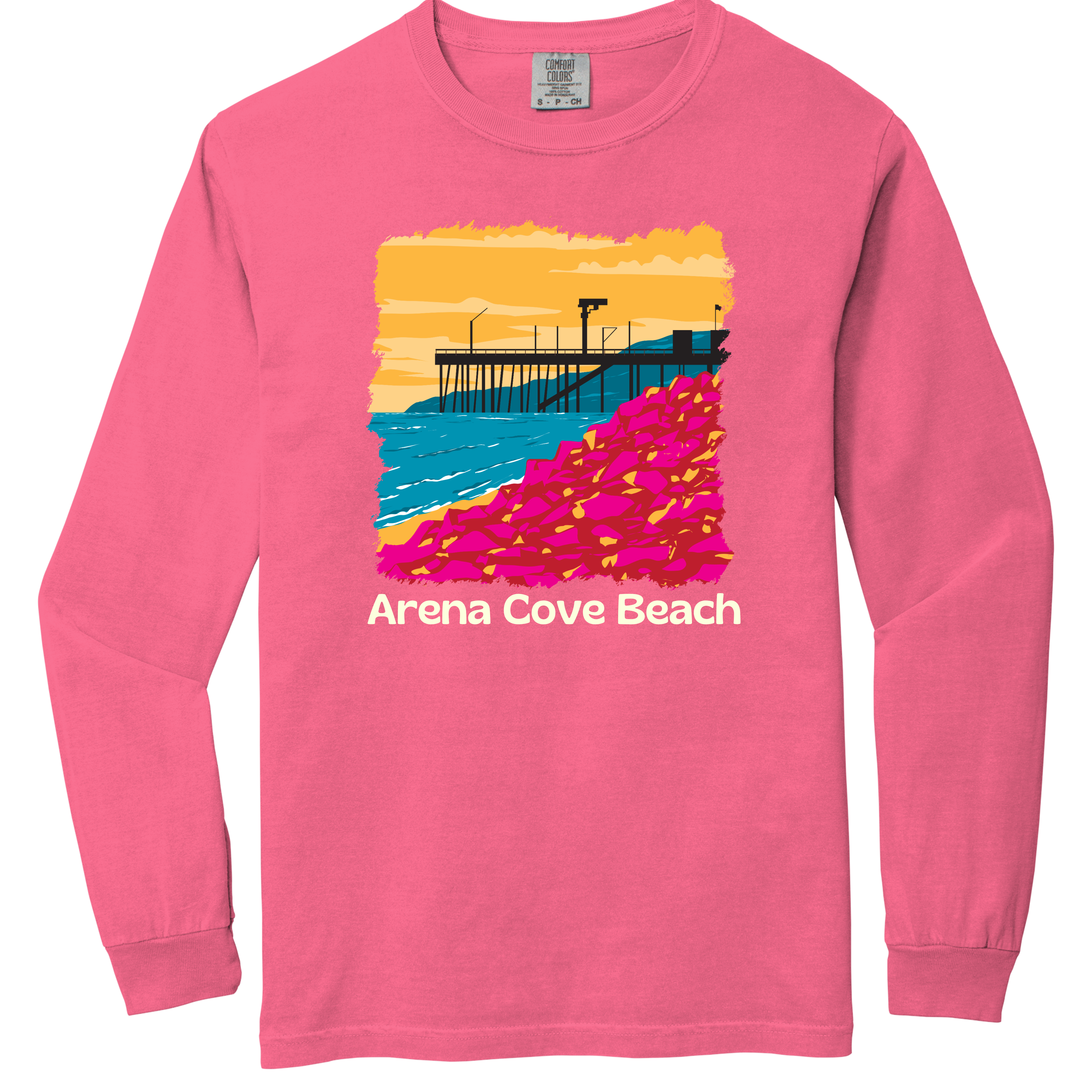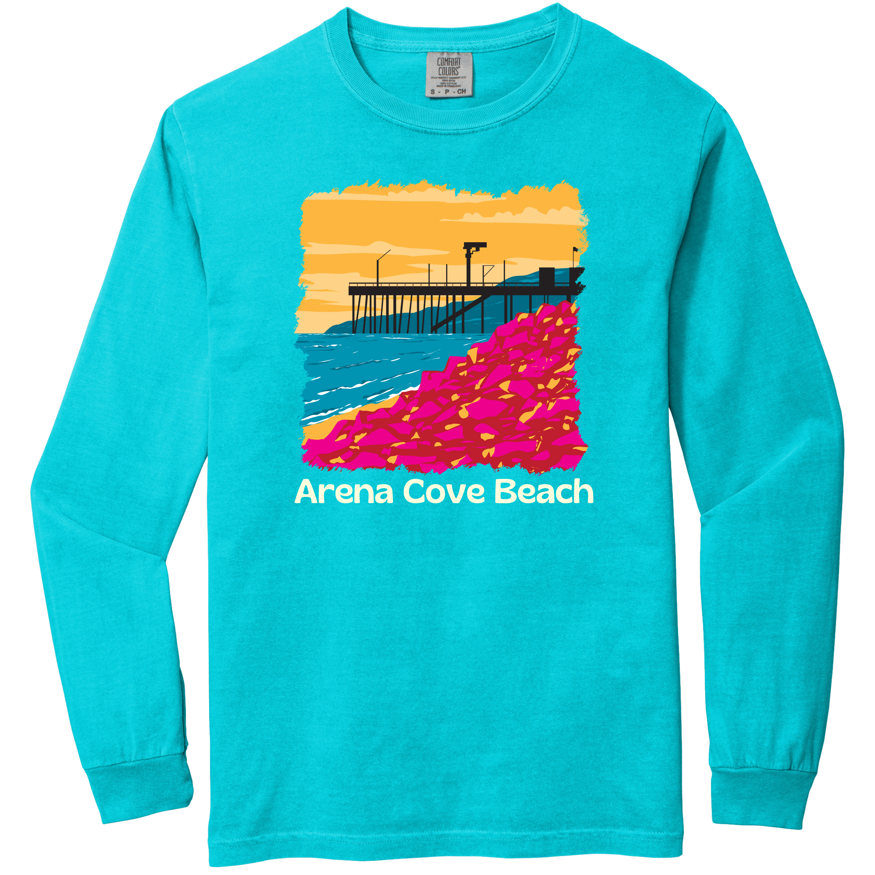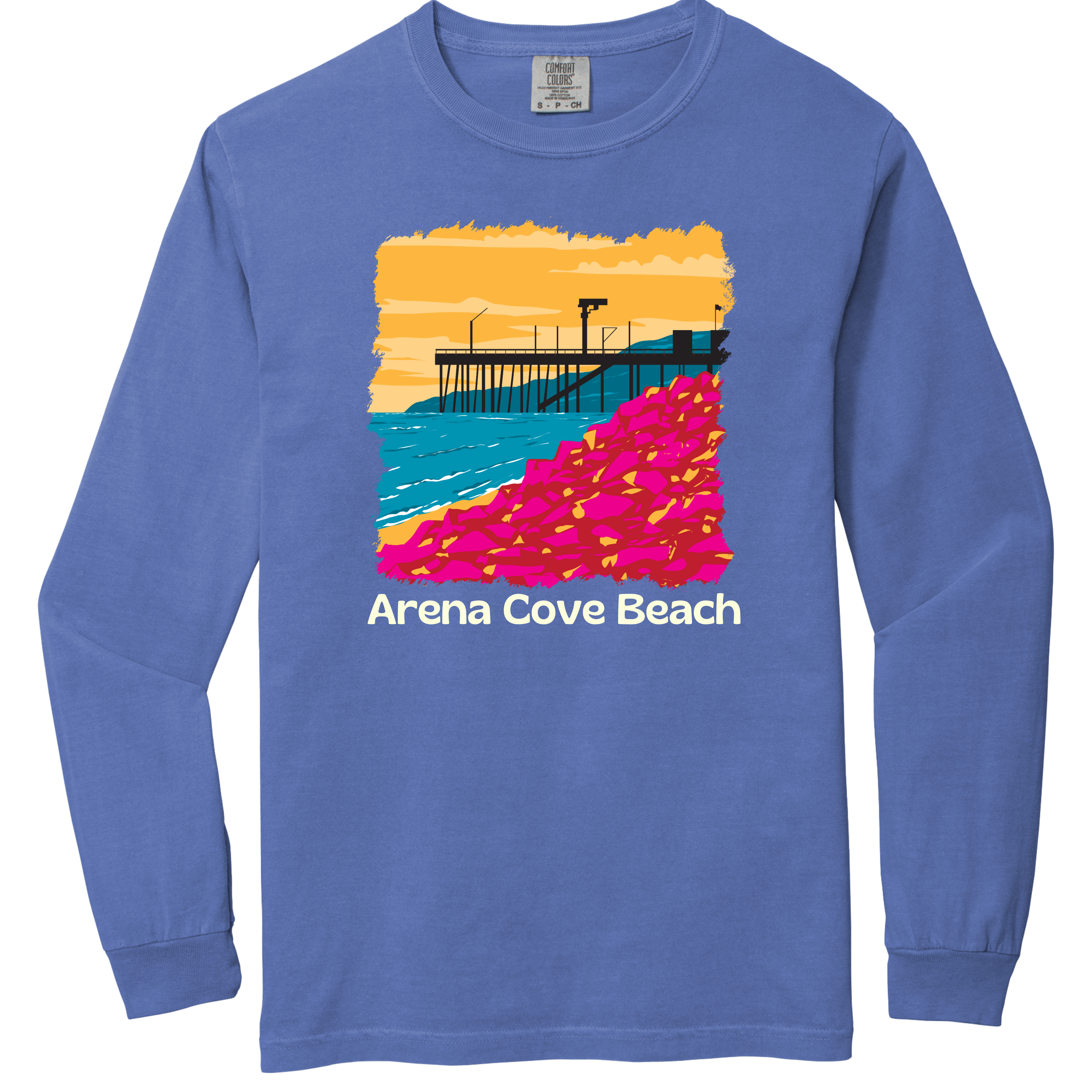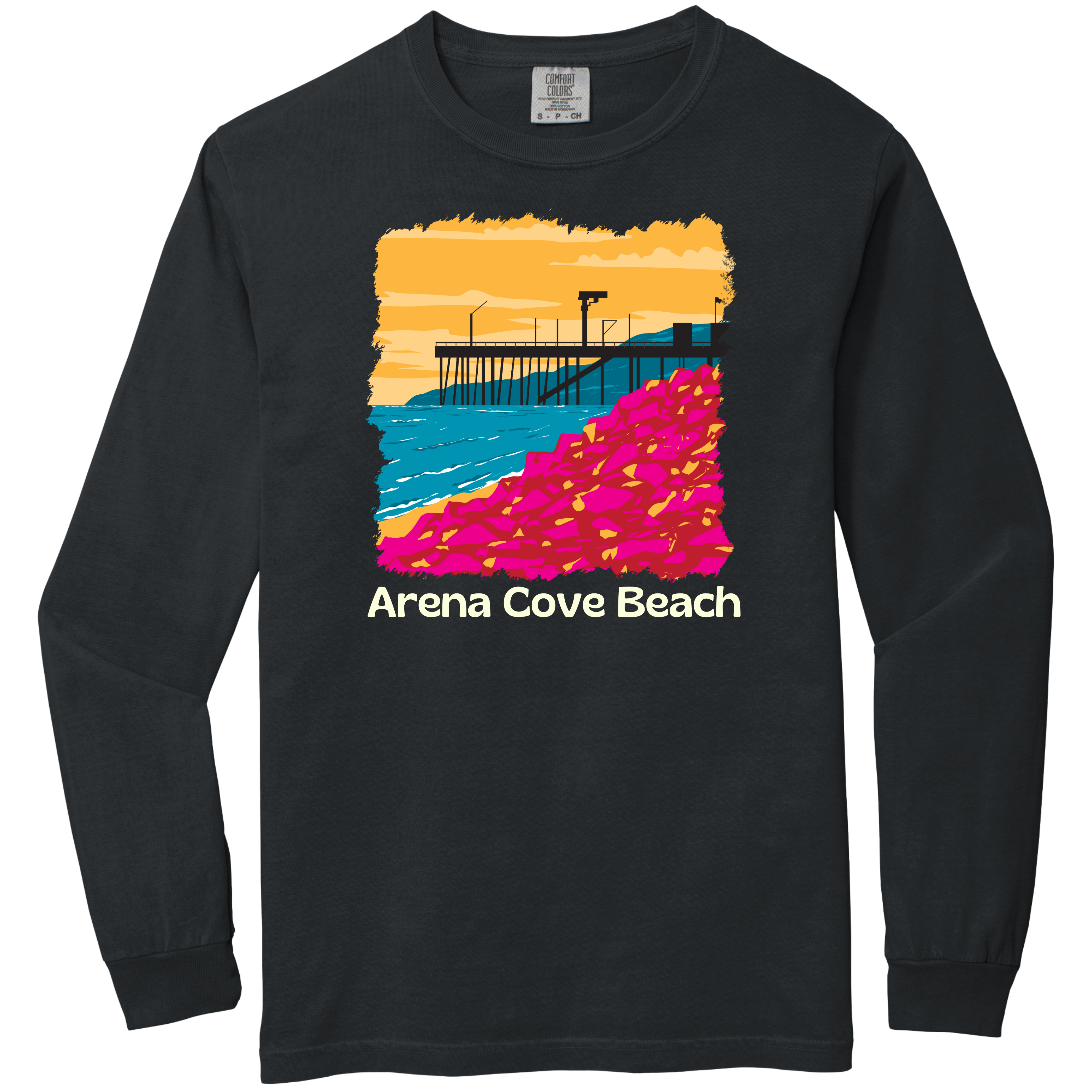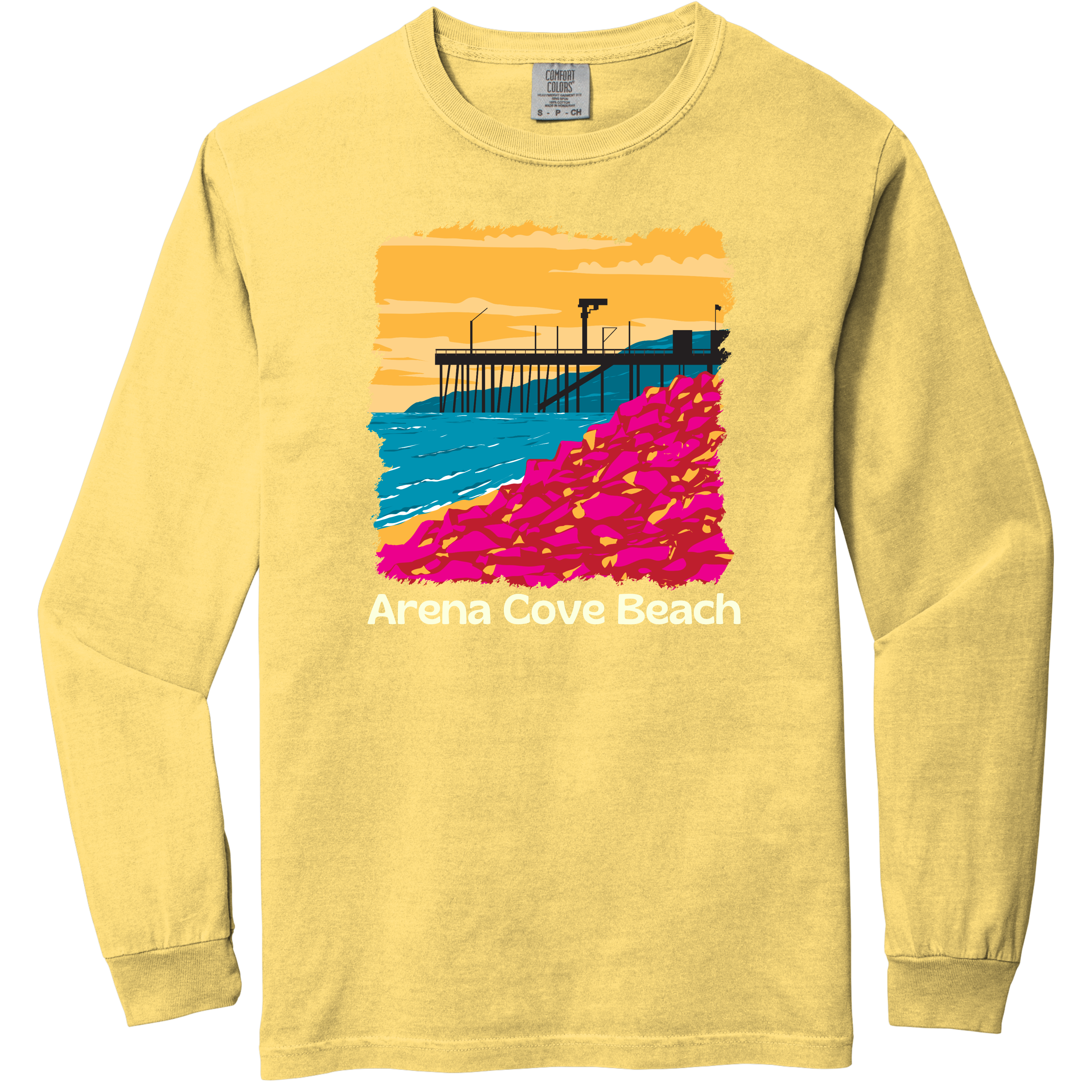 Experience the laid-back vibes of California surfing with our Arena Cove Surf Long Sleeve T-Shirt. Made from soft garment dyed cotton, this California t-shirt is perfect for those sunny days at Arena Cove Beach. Show off your love for surfing while staying comfortable and stylish. Perfect gift for beach lovers.