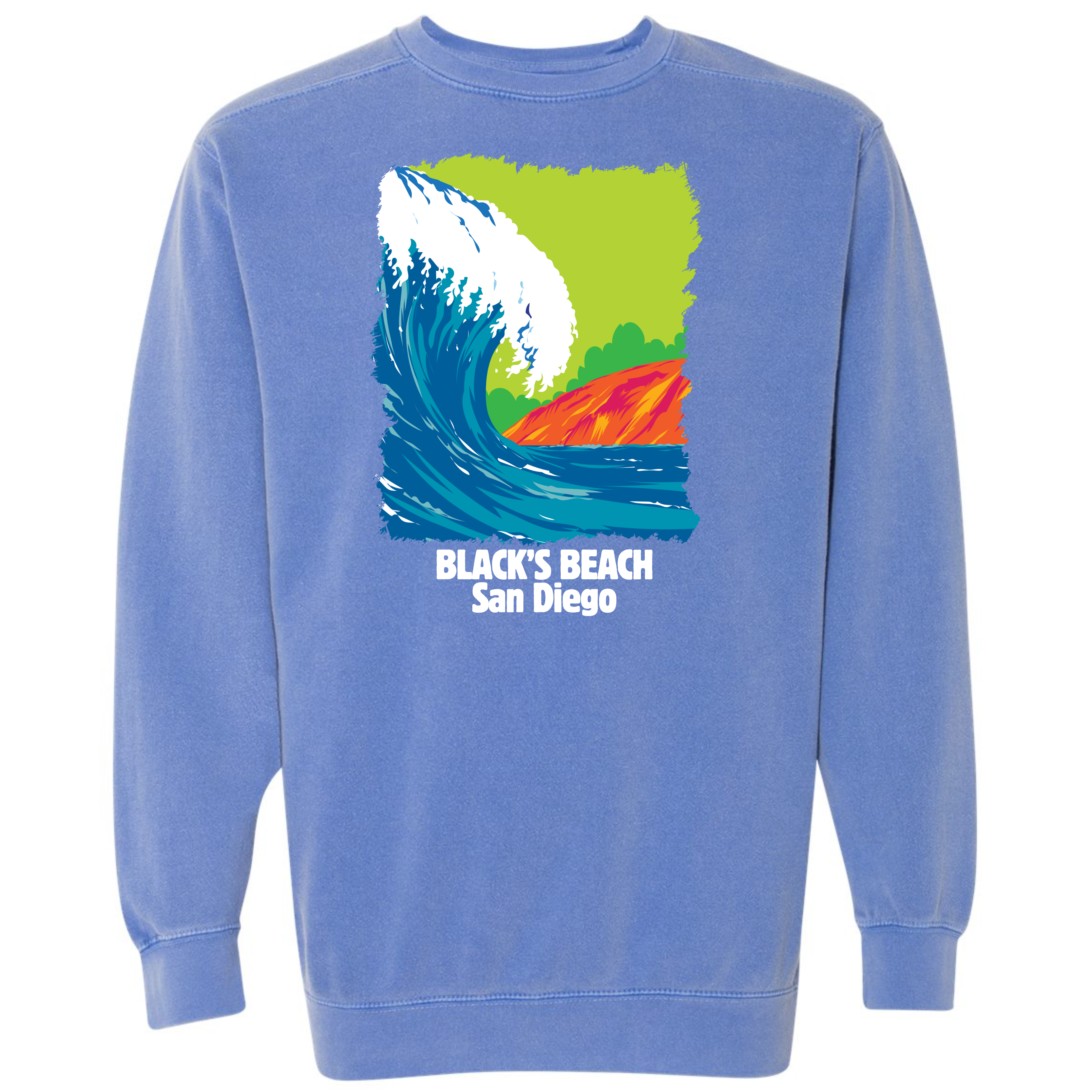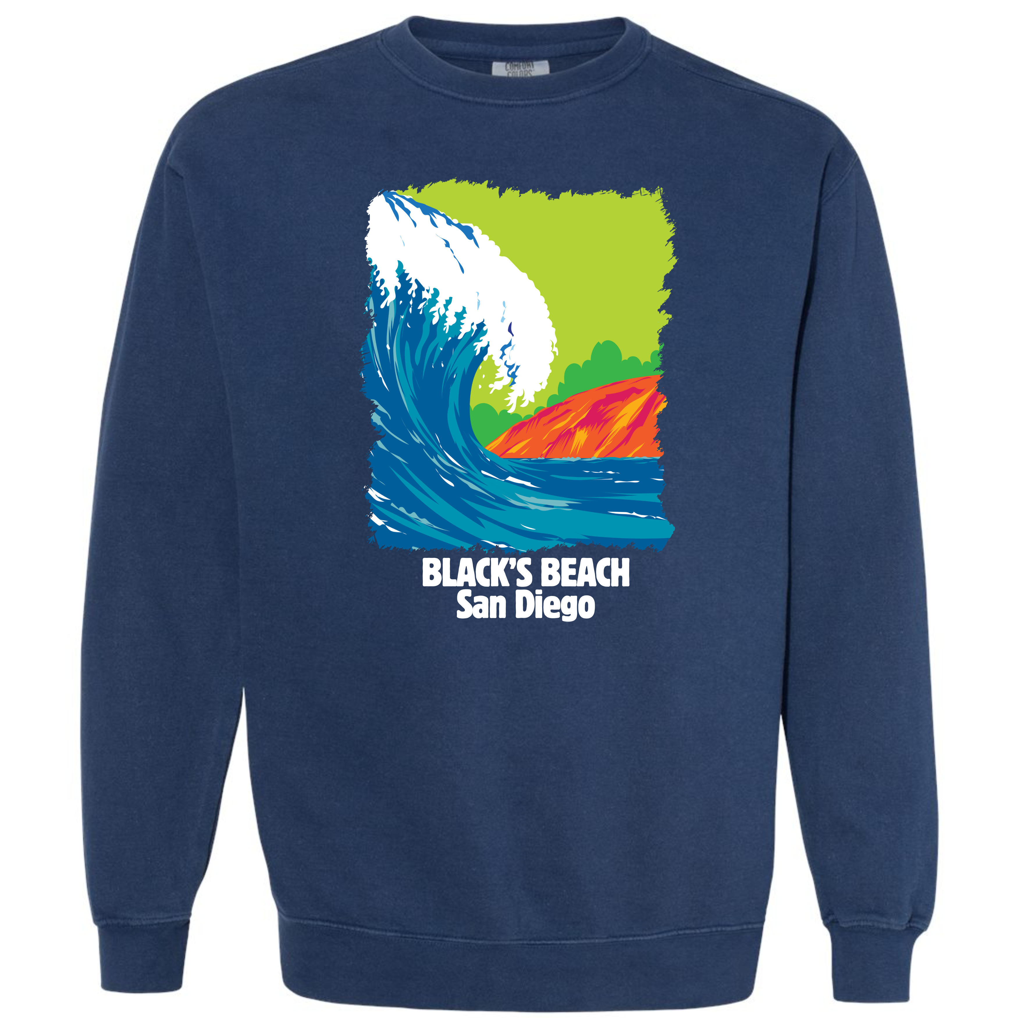 Channel the effortless coastal cool of San Diego’s iconic Black's Beach with our premium garment-dyed cotton sweatshirt. Crafted for ultimate comfort and style, this sweatshirt boasts a relaxed fit that is perfect for nights at the beach. The soft, 100% cotton fabric undergoes a special garment-dye process, giving it a lived-in look and feel that only gets better with time. Featuring a vintage-inspired surf print of Black's Beach, known for its towering cliffs and legendary waves, this sweatshirt is perfect for surfers and sun-seekers alike. Whether you’re catching waves or lounging by the fire, it’s always surf season with this classic piece.