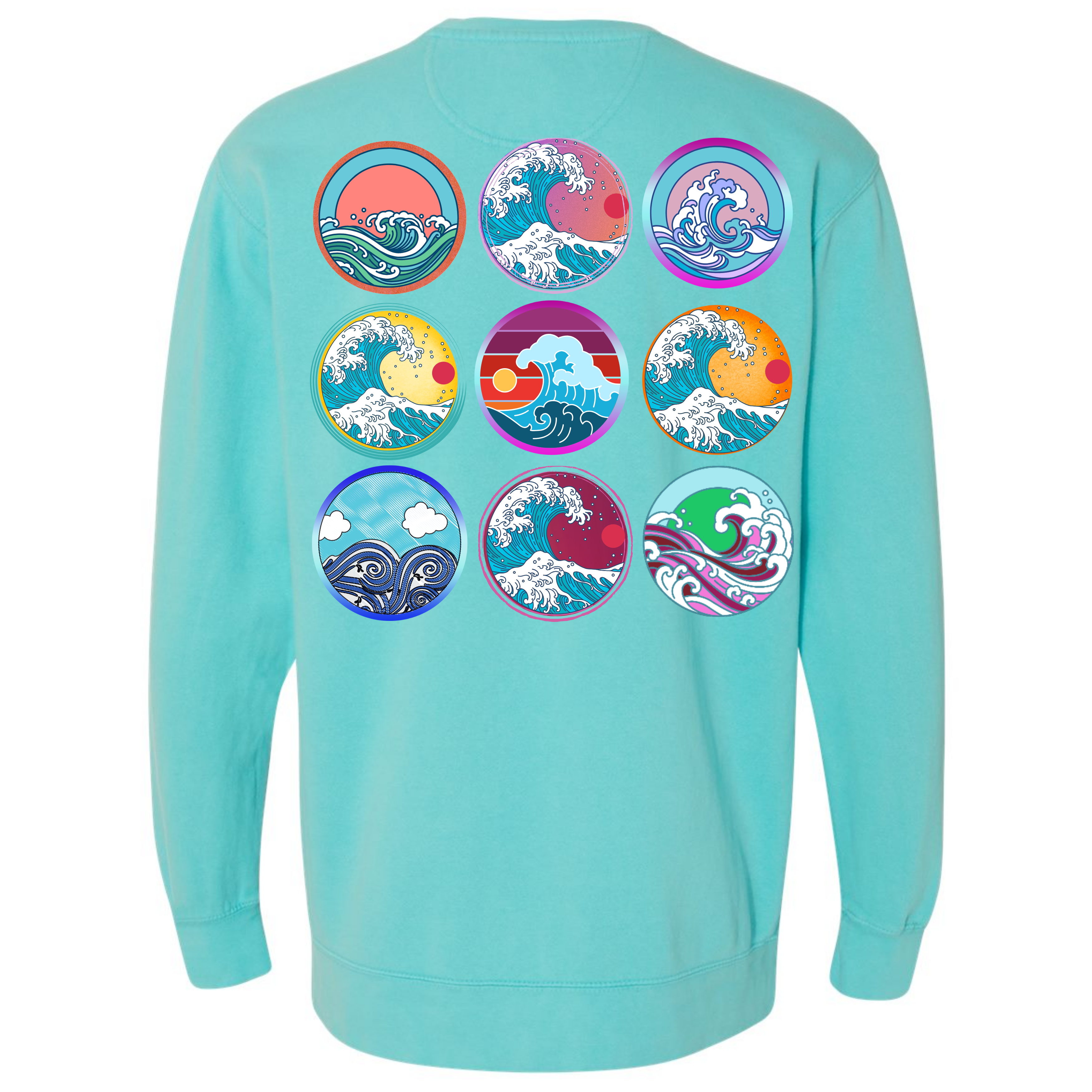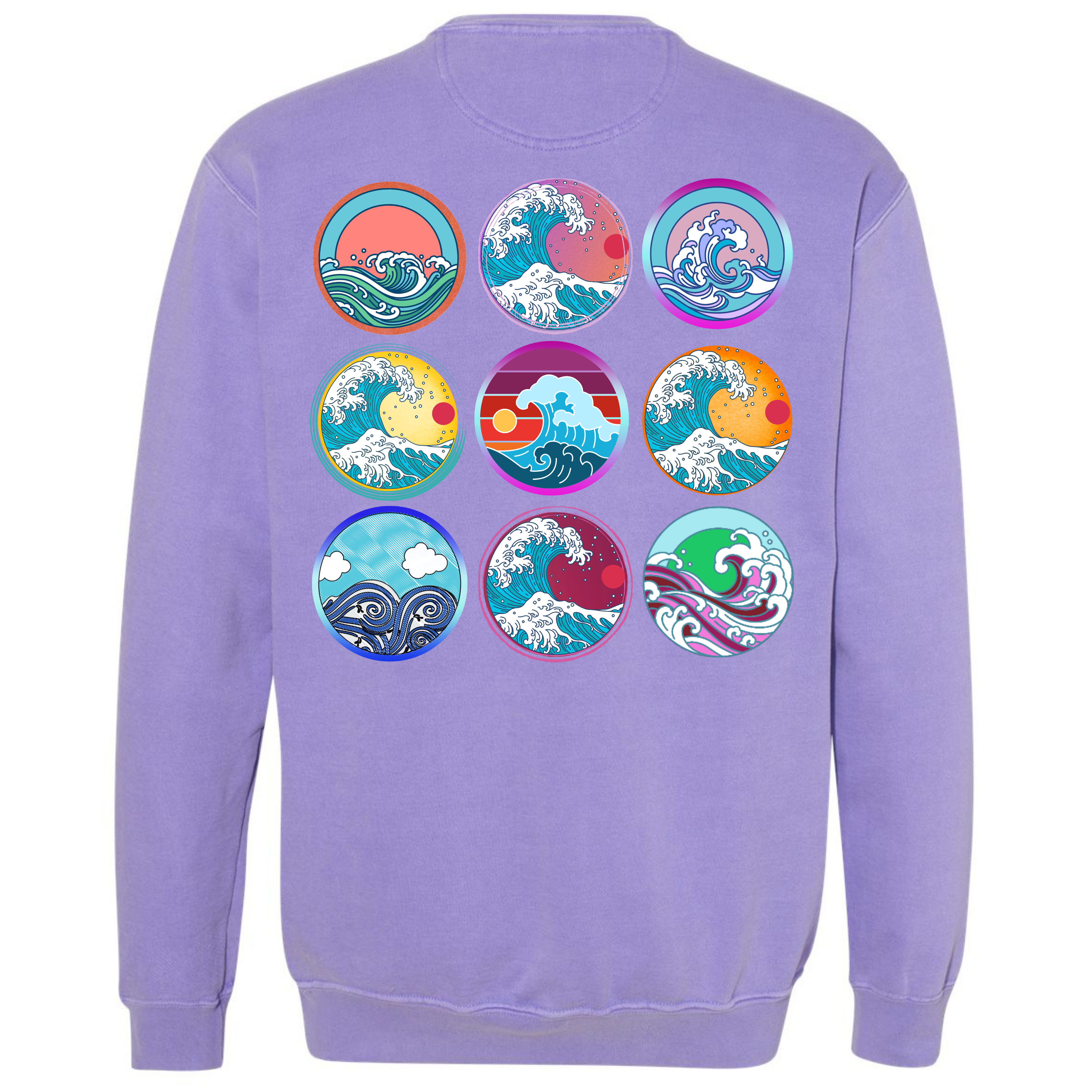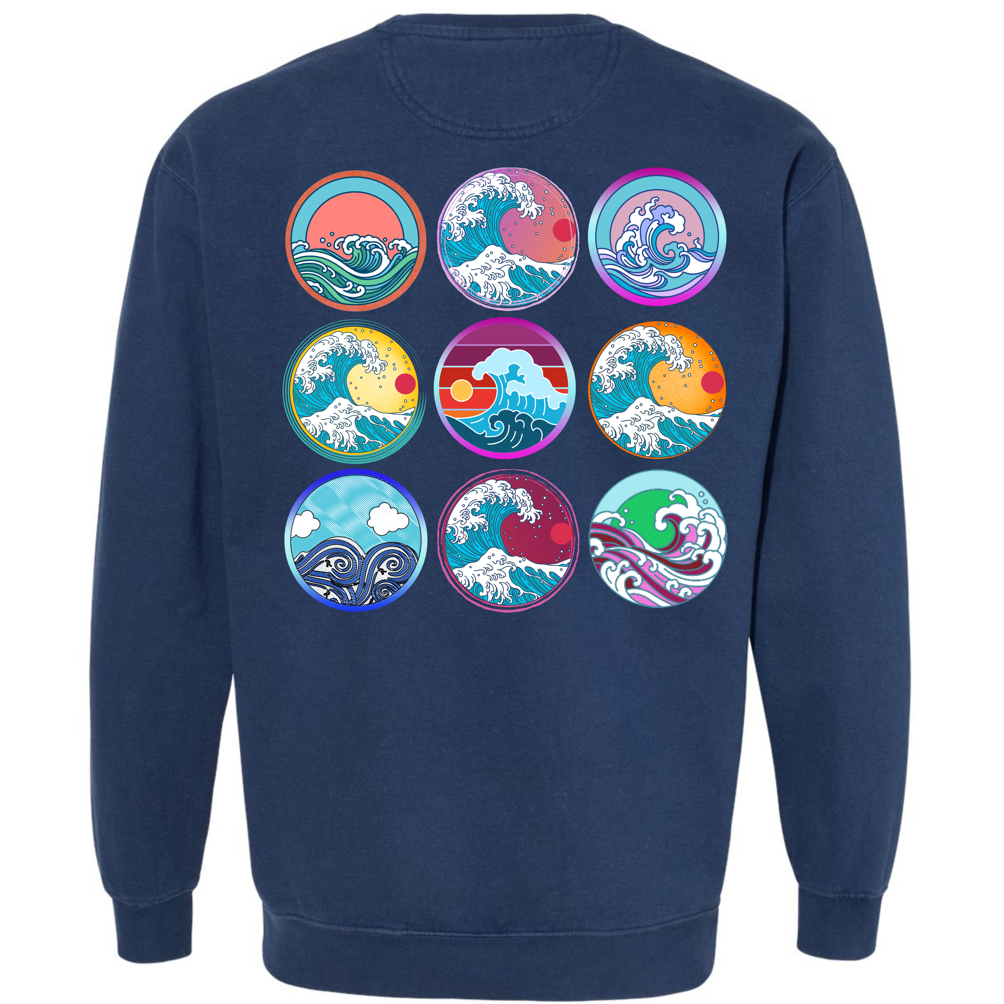 Pick a wave to ride! The softness of our long-sleeve crewneck sweatshirt is because it's garment dyed. This sweatshirt is unisex and has an oversized fit. If you want a smaller fit, we suggest you size down since this sweatshirt is pre-shrunk due to its dye process. We guarantee it will be your favorite sweatshirt because of its comfort. Our wave circles design is a Direct to Garment print that will last a lifetime. Make sure you check out our size chart for exact measurements to ensure your perfect fit.