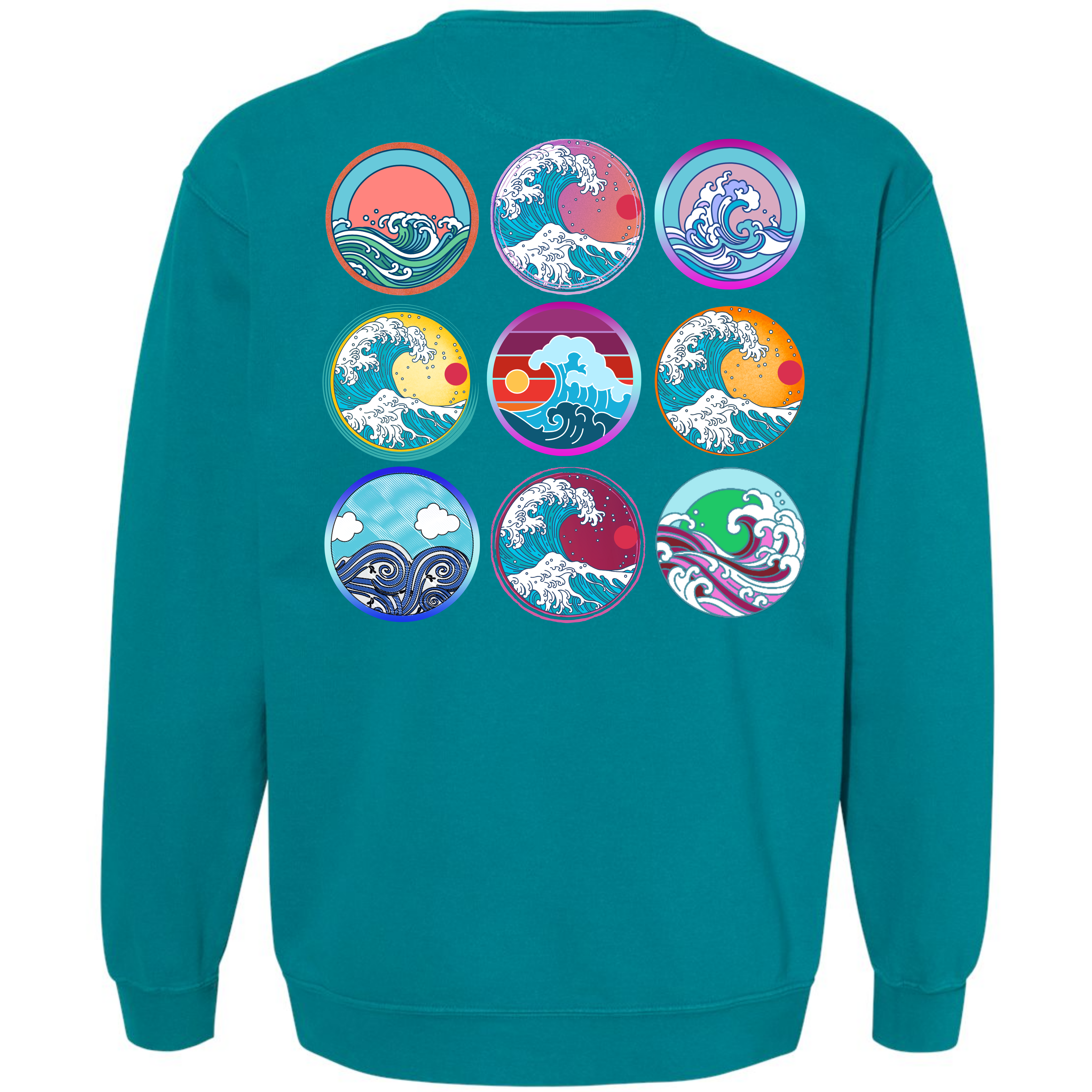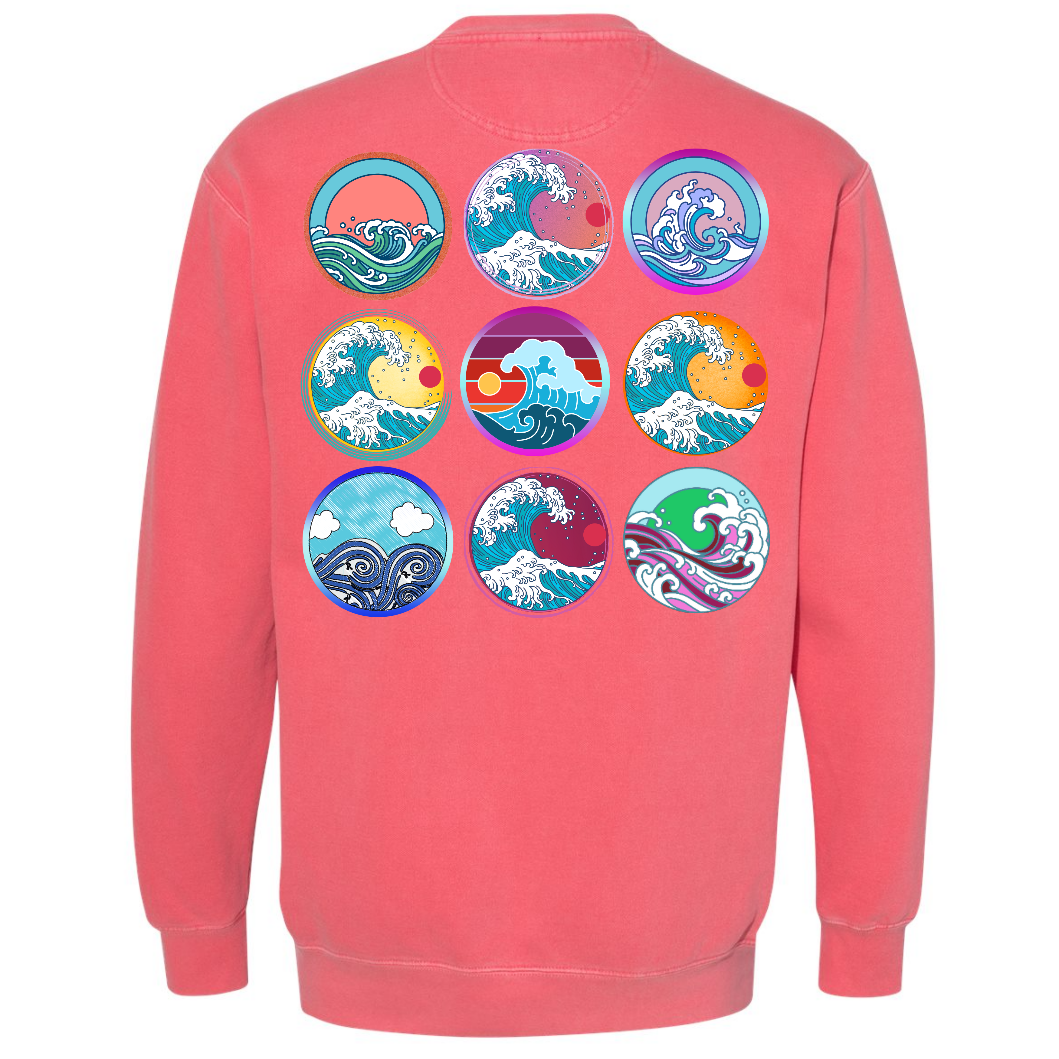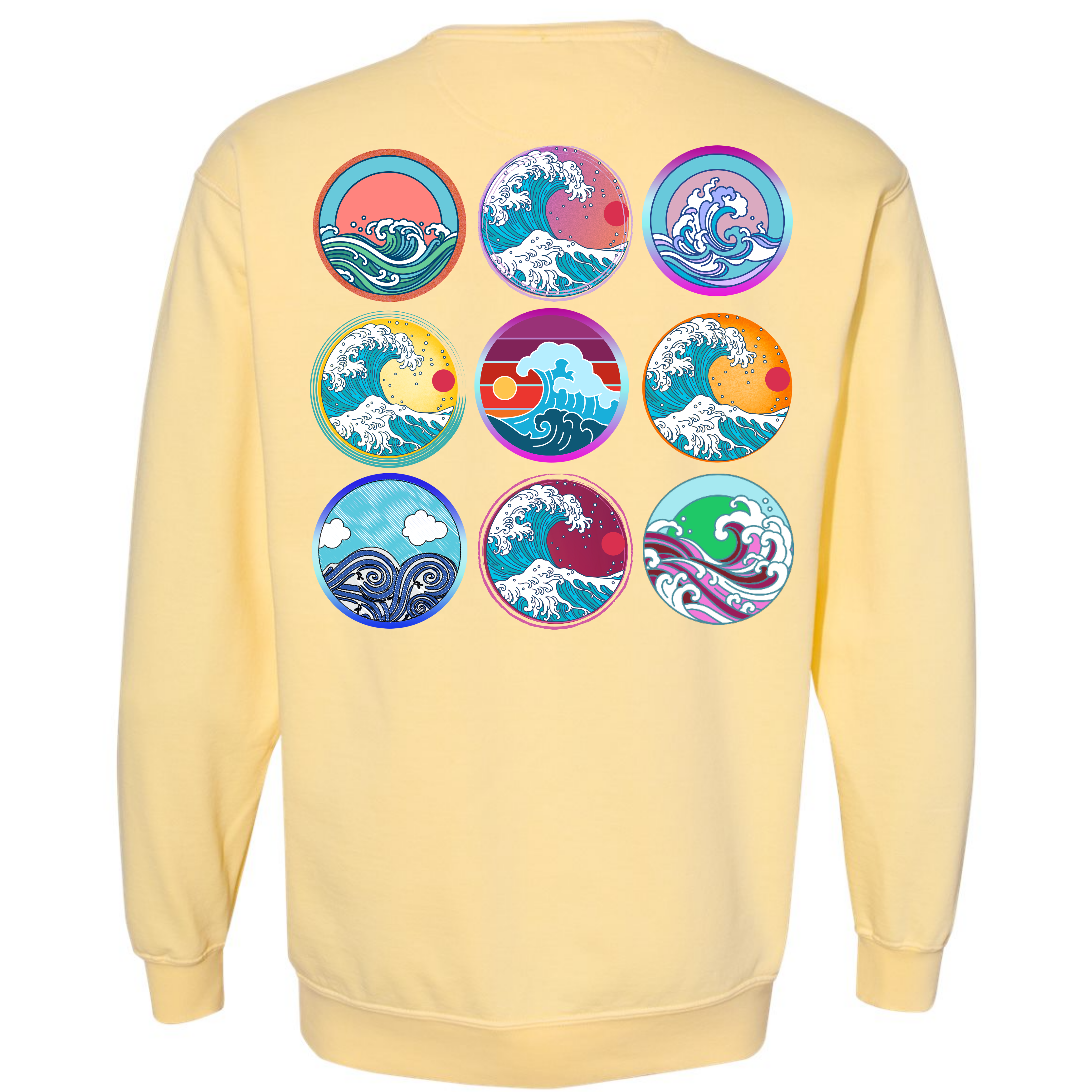 Pick a wave to ride! The softness of our long-sleeve crewneck sweatshirt is because it's garment dyed. This sweatshirt is unisex and has an oversized fit. If you want a smaller fit, we suggest you size down since this sweatshirt is pre-shrunk due to its dye process. We guarantee it will be your favorite sweatshirt because of its comfort. Our wave circles design is a Direct to Garment print that will last a lifetime. Make sure you check out our size chart for exact measurements to ensure your perfect fit.