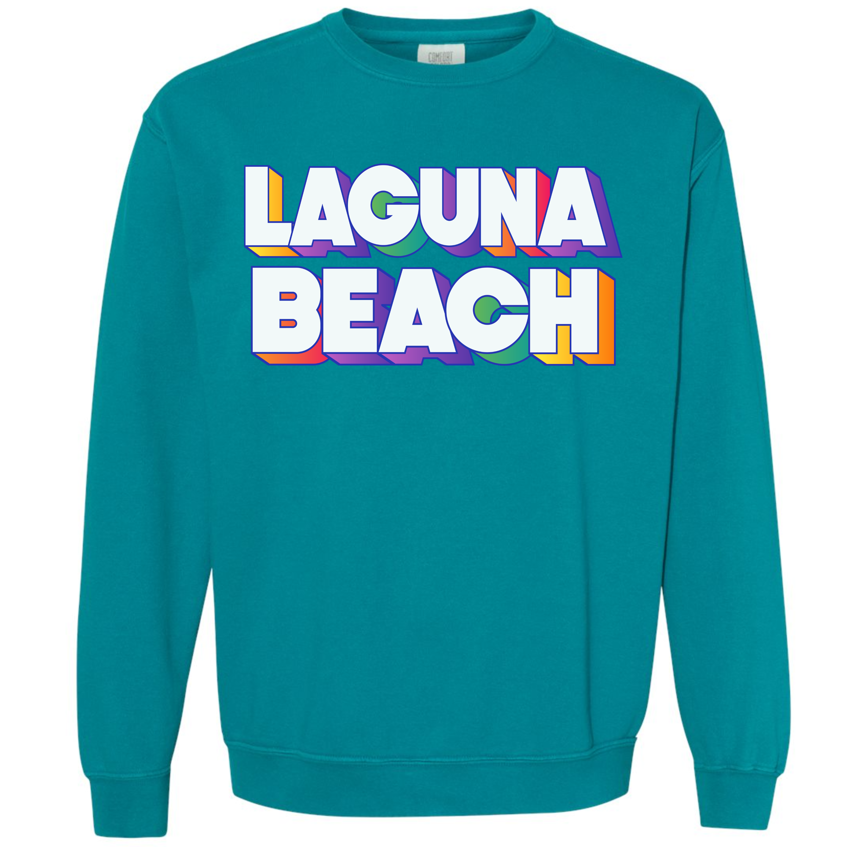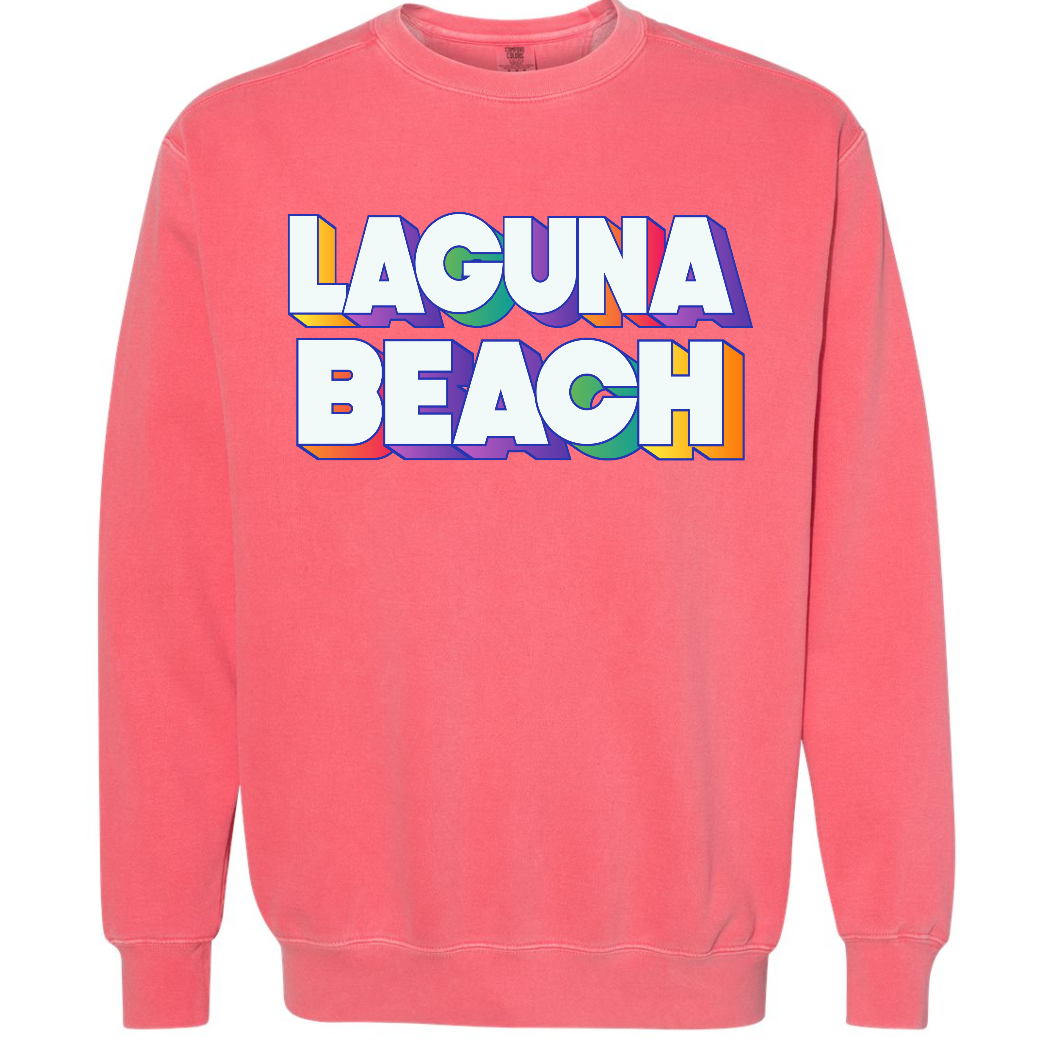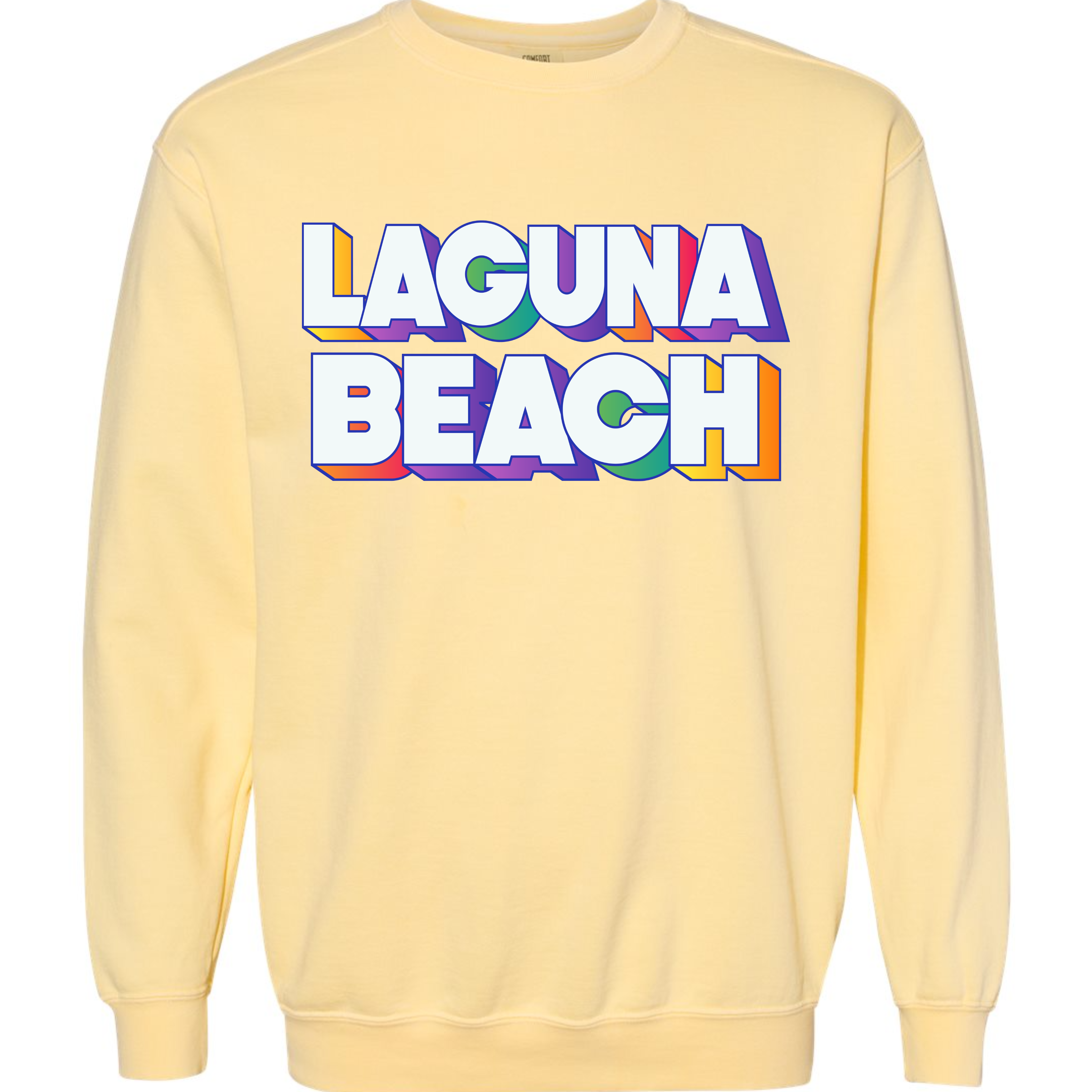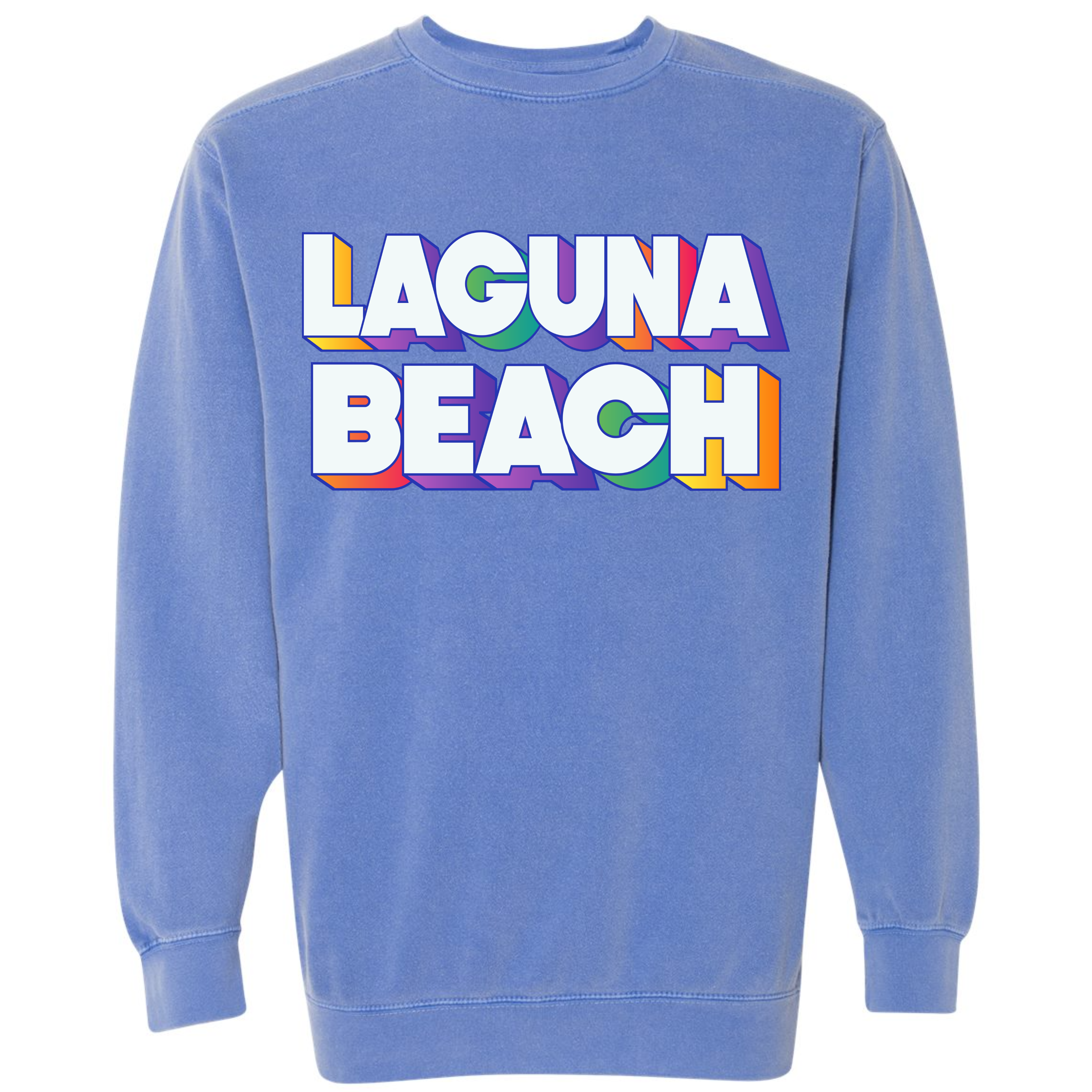 Laguna Beach is the place to be! The softness of our long-sleeve crewneck sweatshirt is because it's garment dyed. This sweatshirt is unisex and has an oversized fit. If you want a smaller fit, we suggest you size down since this sweatshirt is pre-shrunk due to its dye process. We guarantee it will be your favorite sweatshirt because of its comfort. Our bright "laguna beach" design is a Direct to Garment print that will last a lifetime. Make sure you check out our size chart for exact measurements to ensure your perfect fit.