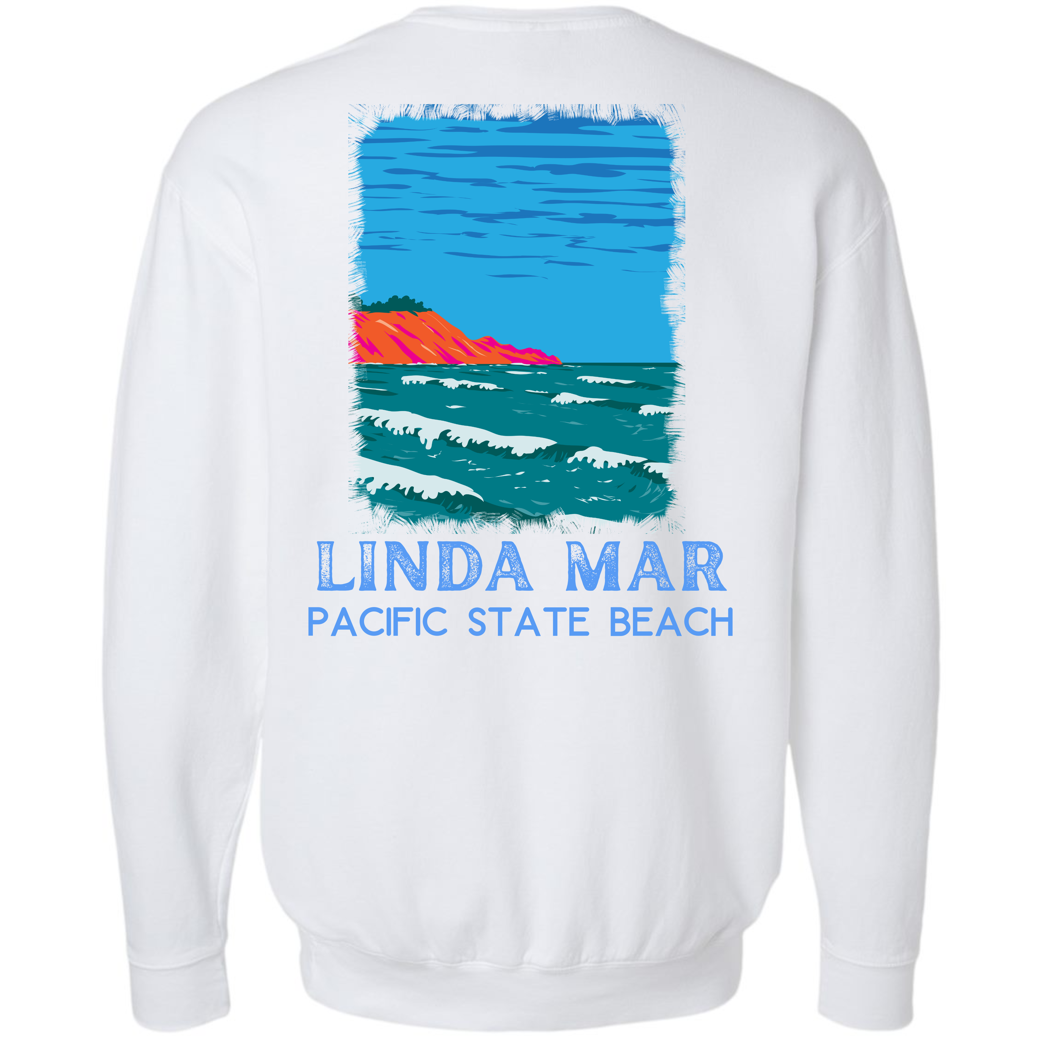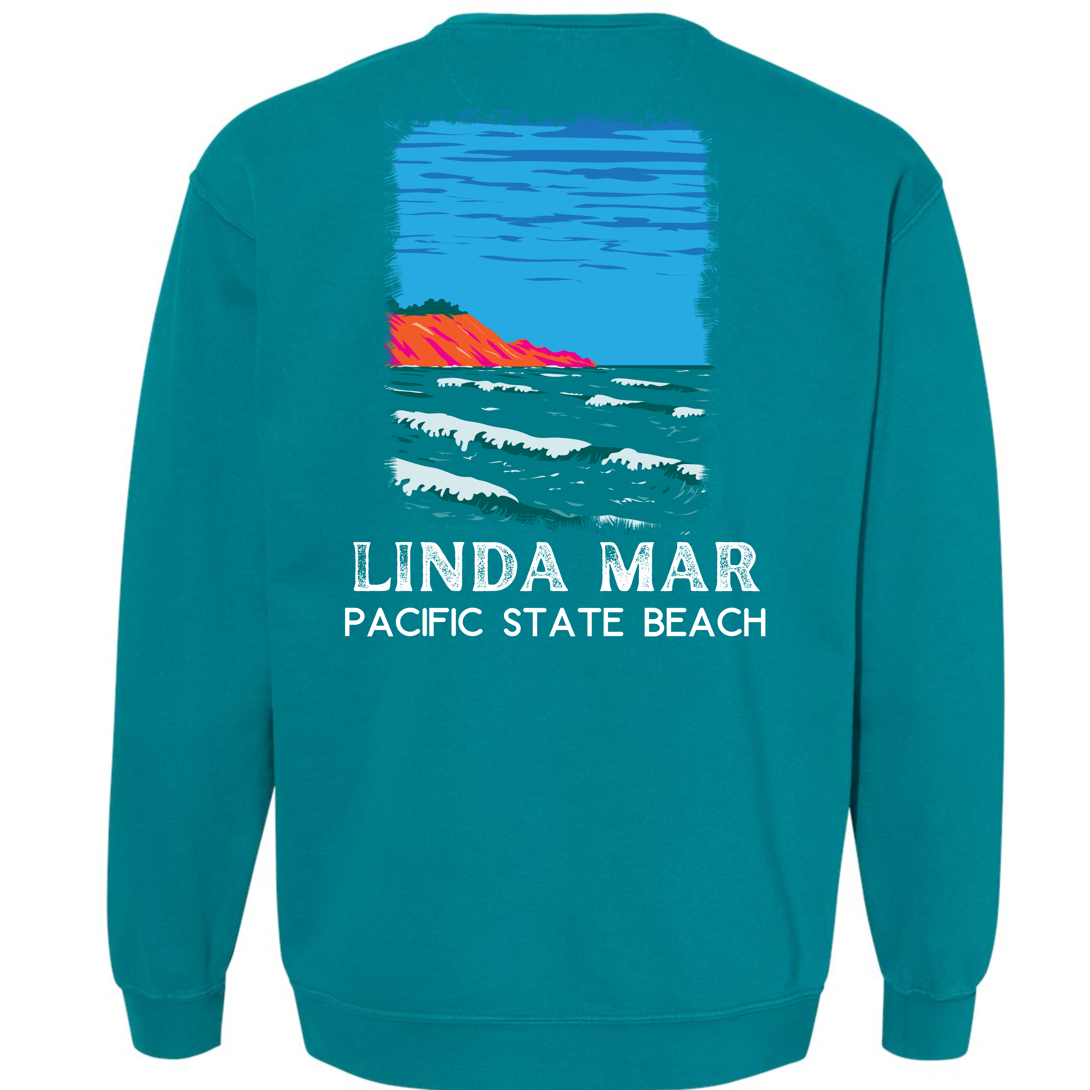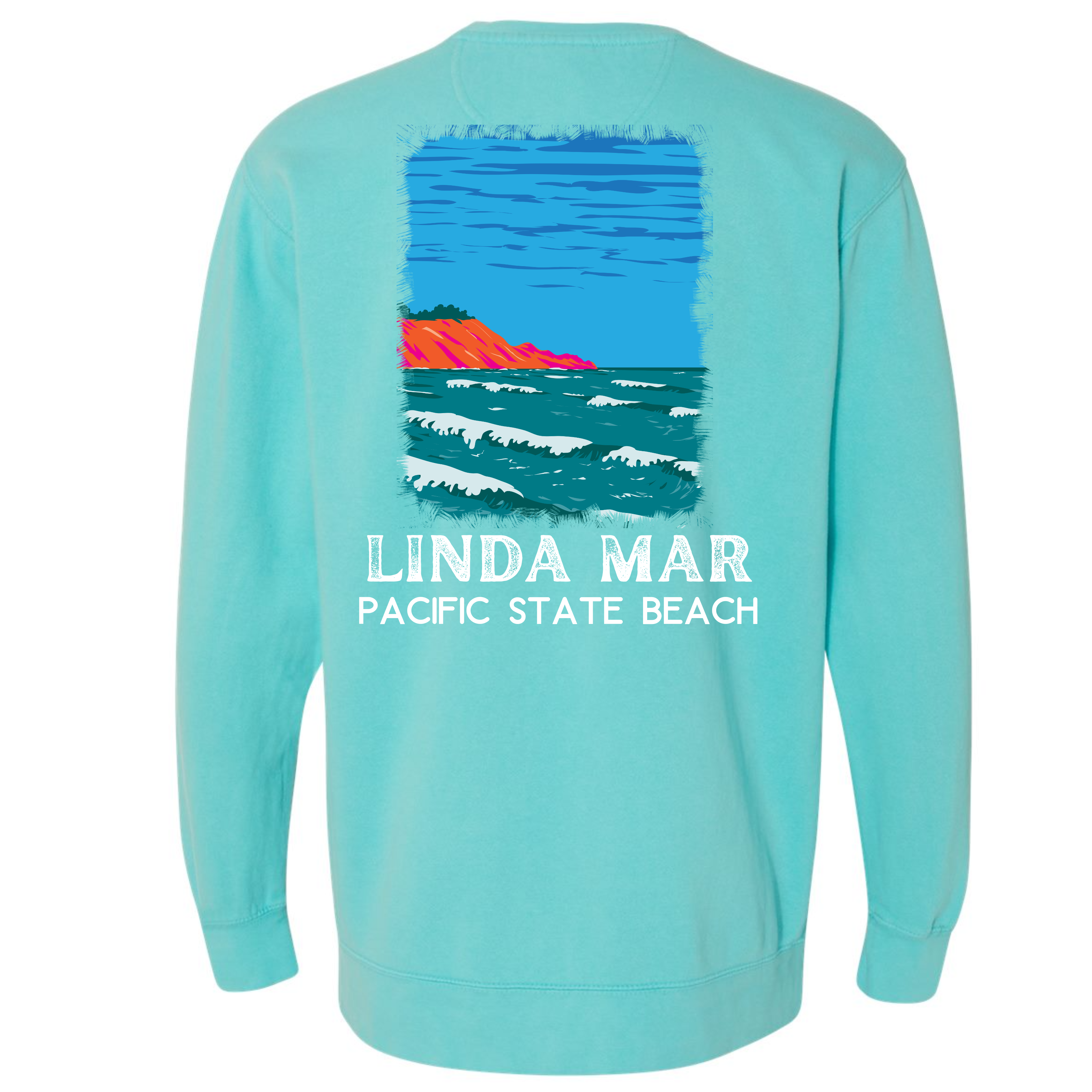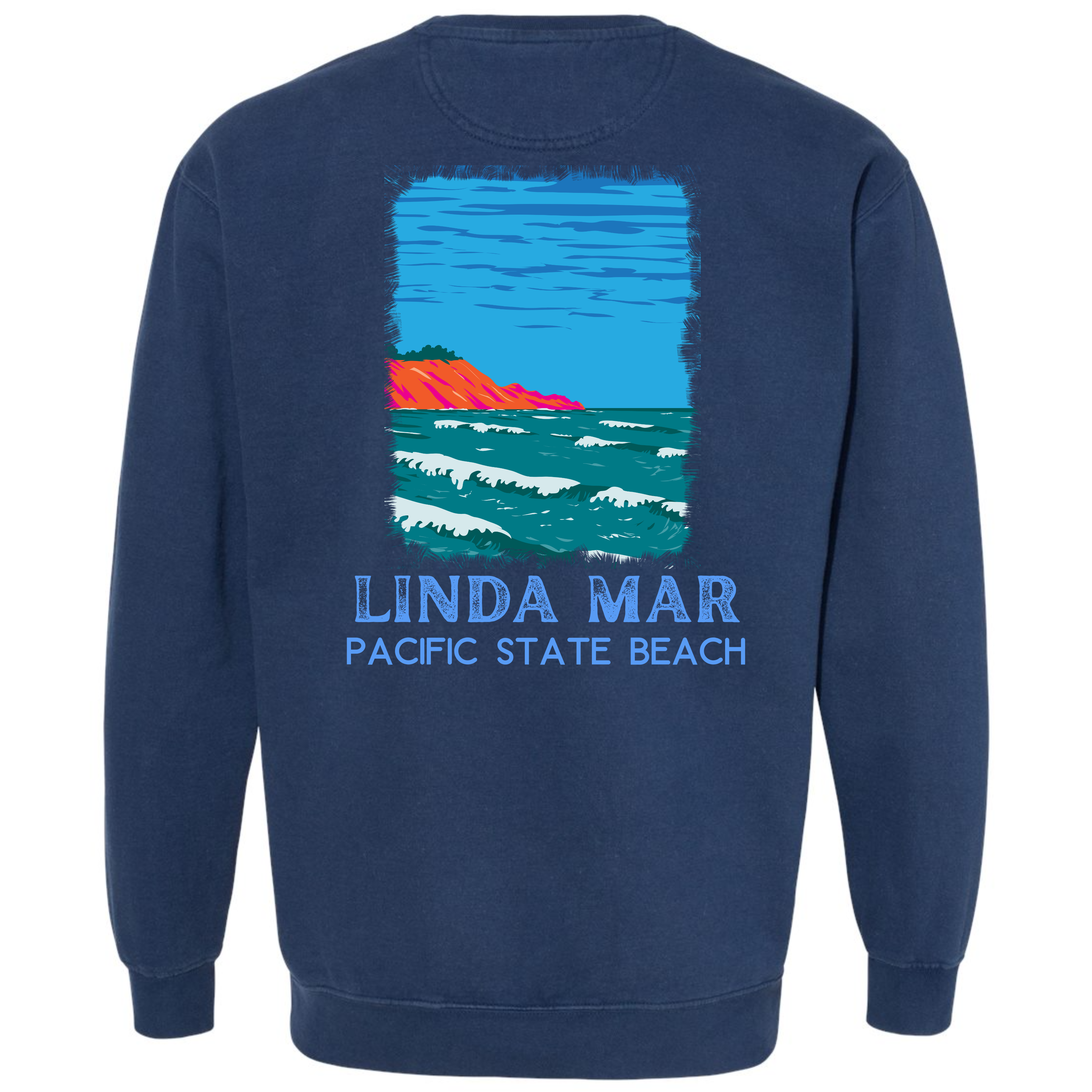 From our California Beach Collection, this LindaMar garment dyed crewneck sweatshirt is guaranteed to please! Our sweatshirt has an oversize / unisex fit. If you want a smaller fit, we suggest you size down since this sweatshirt is pre-shrunk due to its dye process. We guarantee it will be your favorite sweatshirt because of it's softness and comfort. Our bright "Linda Mar" design is a Direct to Garment print that will last a lifetime. Make sure you check out our size chart for exact measurements to ensure your perfect fit.