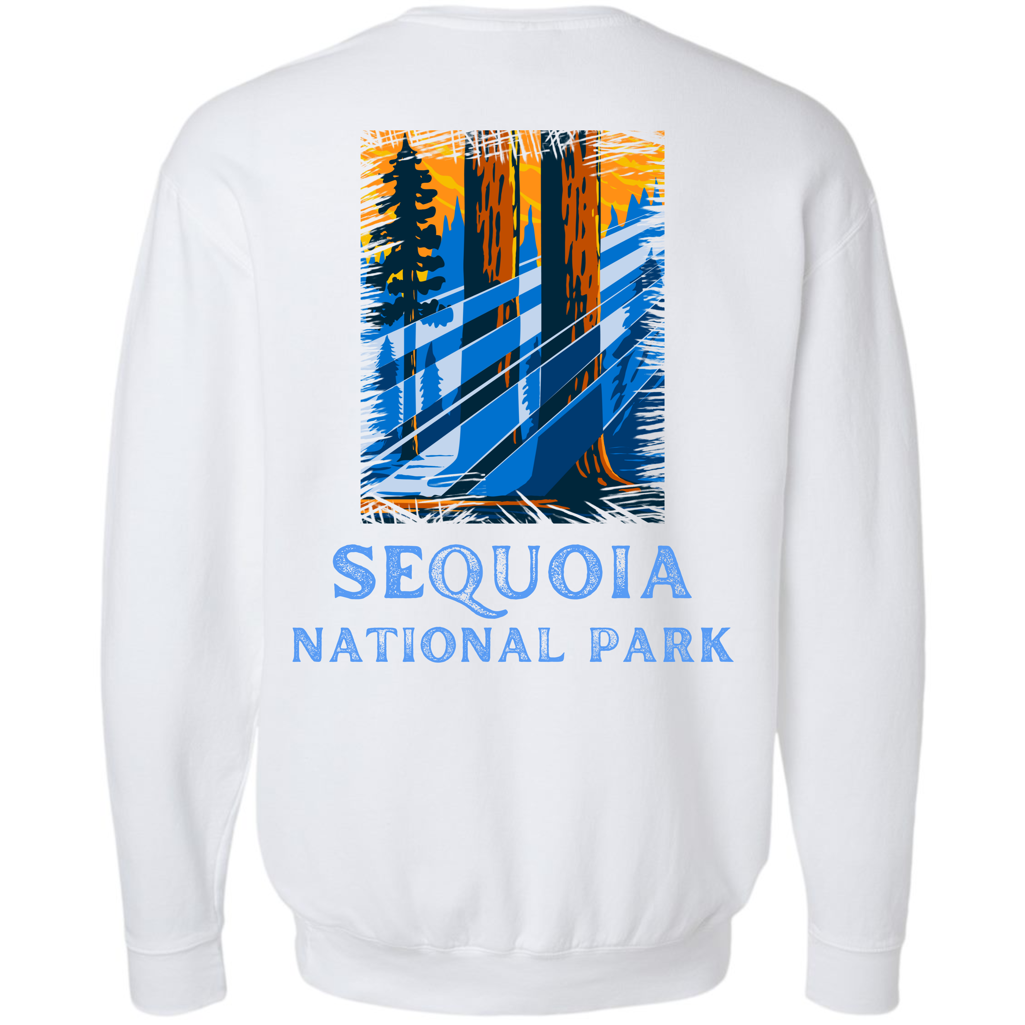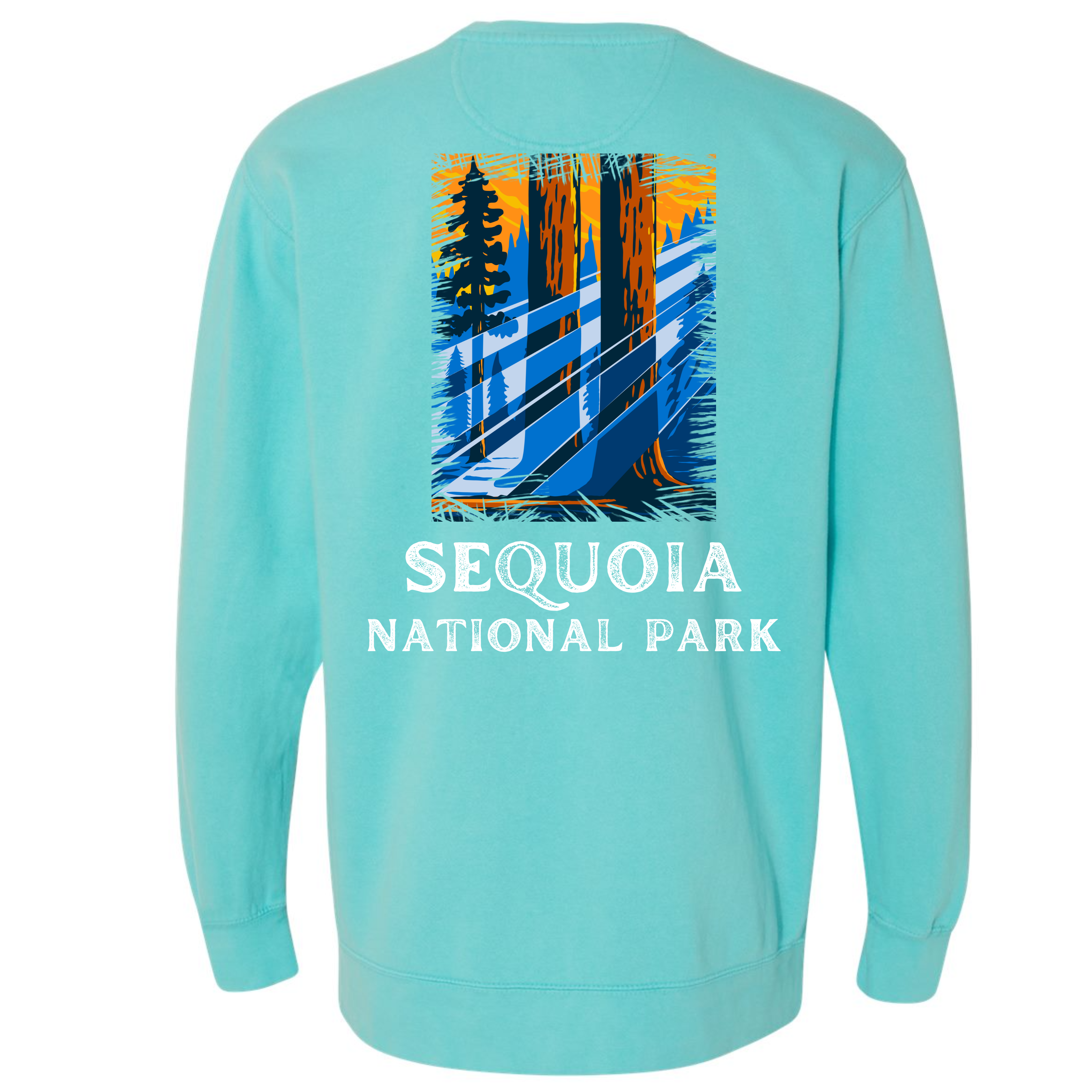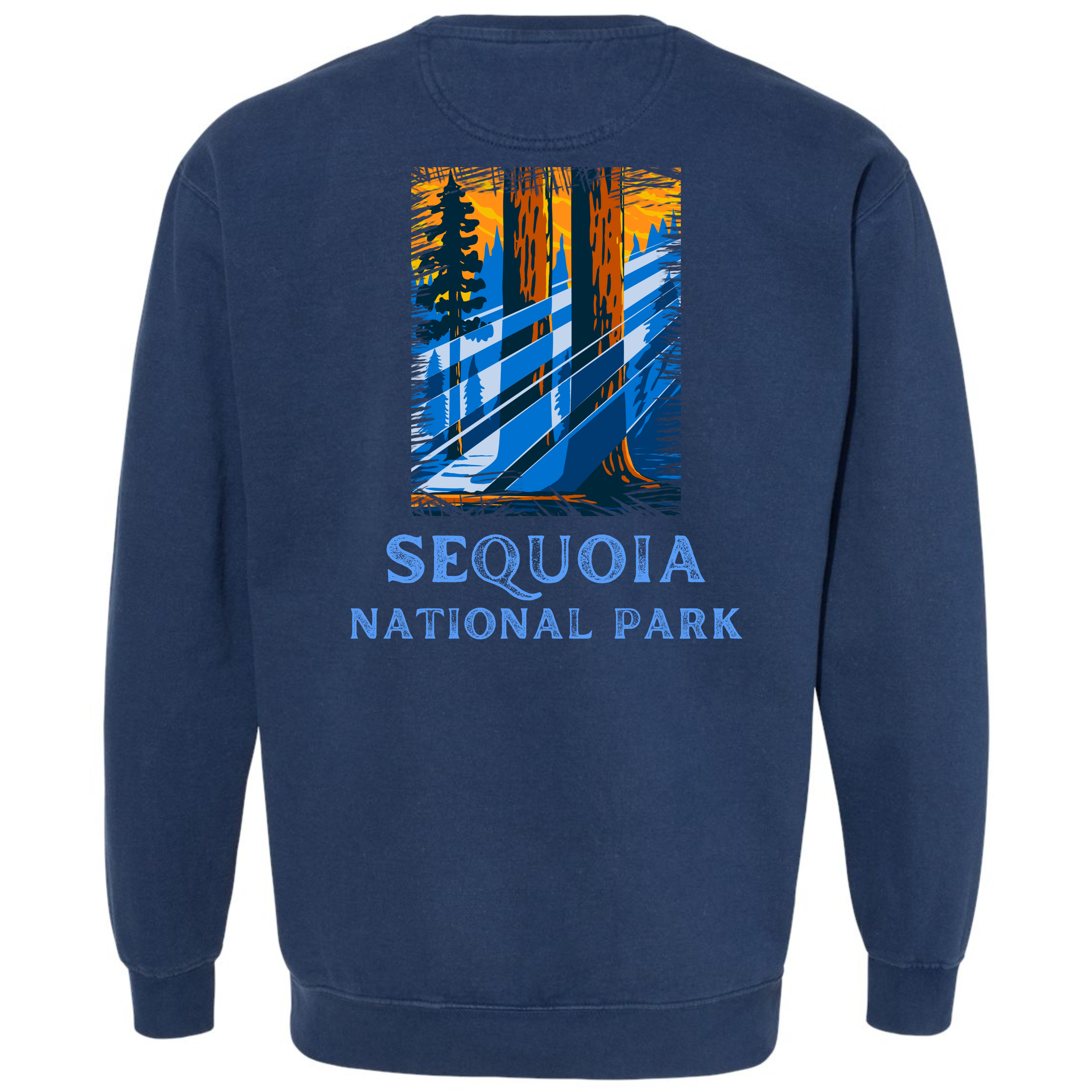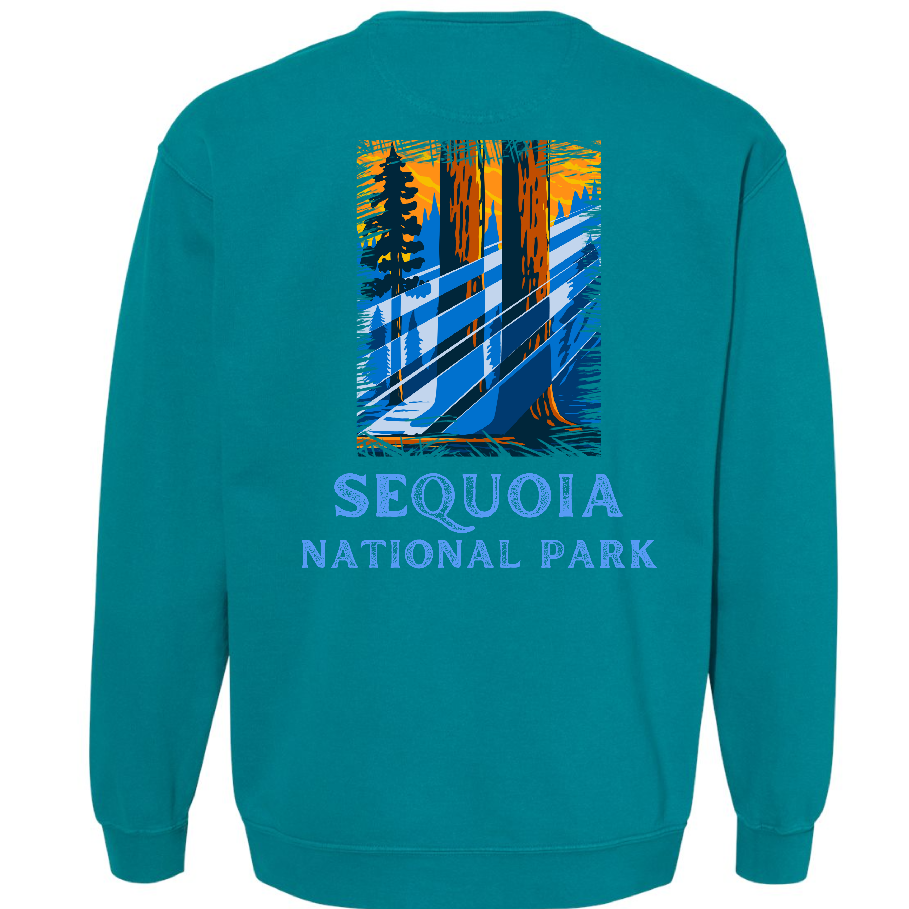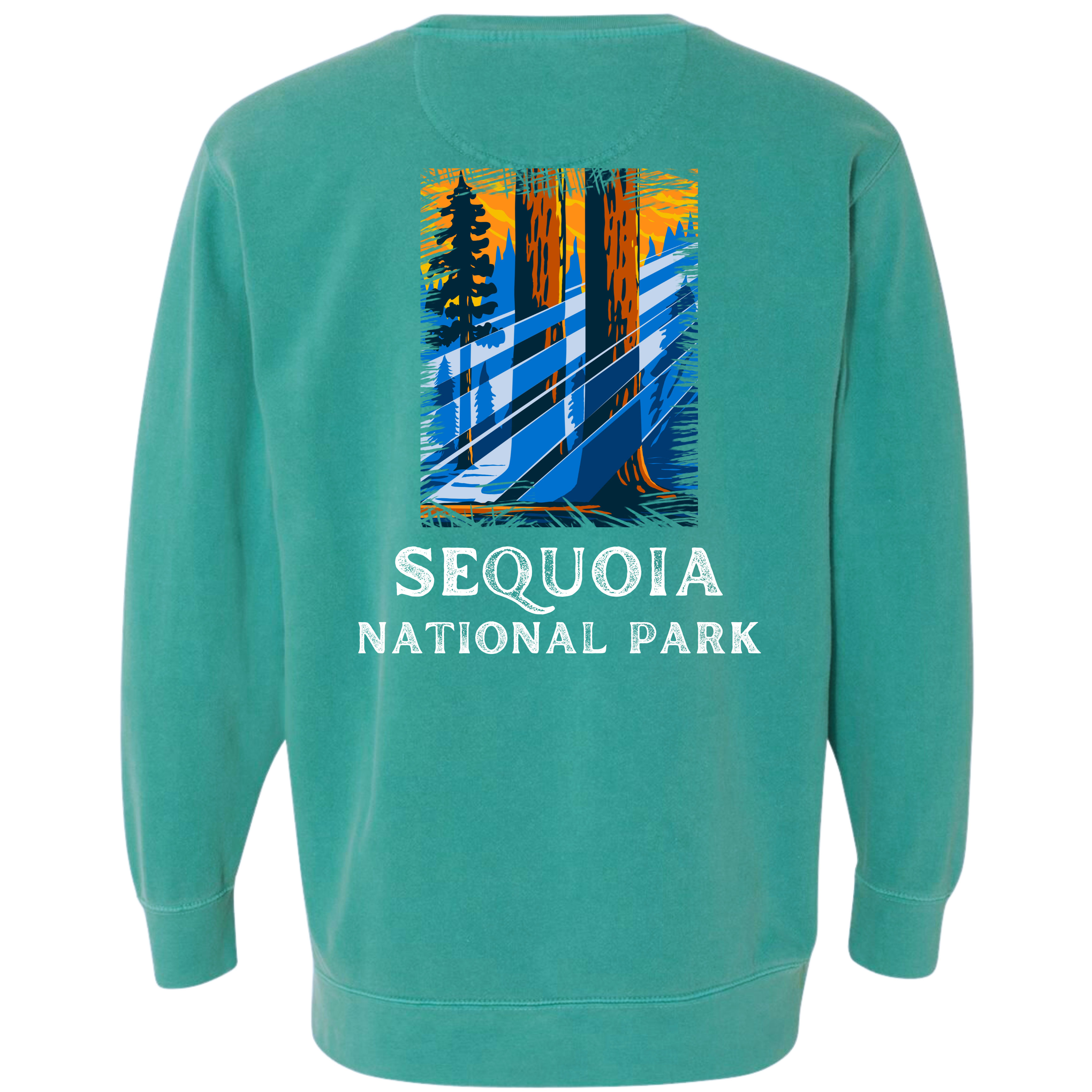 From our State Park Collection, this colorful Sequoia National Park garment dyed crewneck sweatshirt is guaranteed to please! Our sweatshirt has an oversize / unisex fit. If you want a smaller fit, we suggest you size down since this sweatshirt is pre-shrunk due to its dye process. We guarantee it will be your favorite sweatshirt because of it's softness and comfort. Our bright "Sequoia" design is a Direct to Garment print that will last a lifetime. Make sure you check out our size chart for exact measurements to ensure your perfect fit.