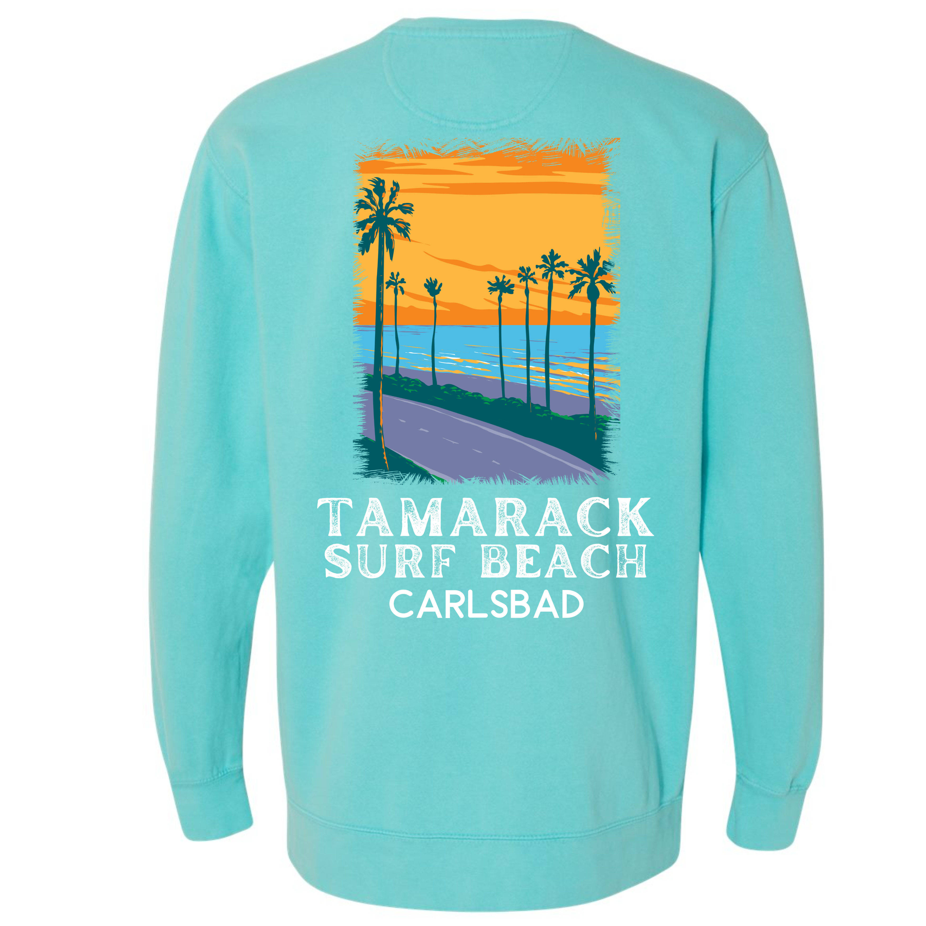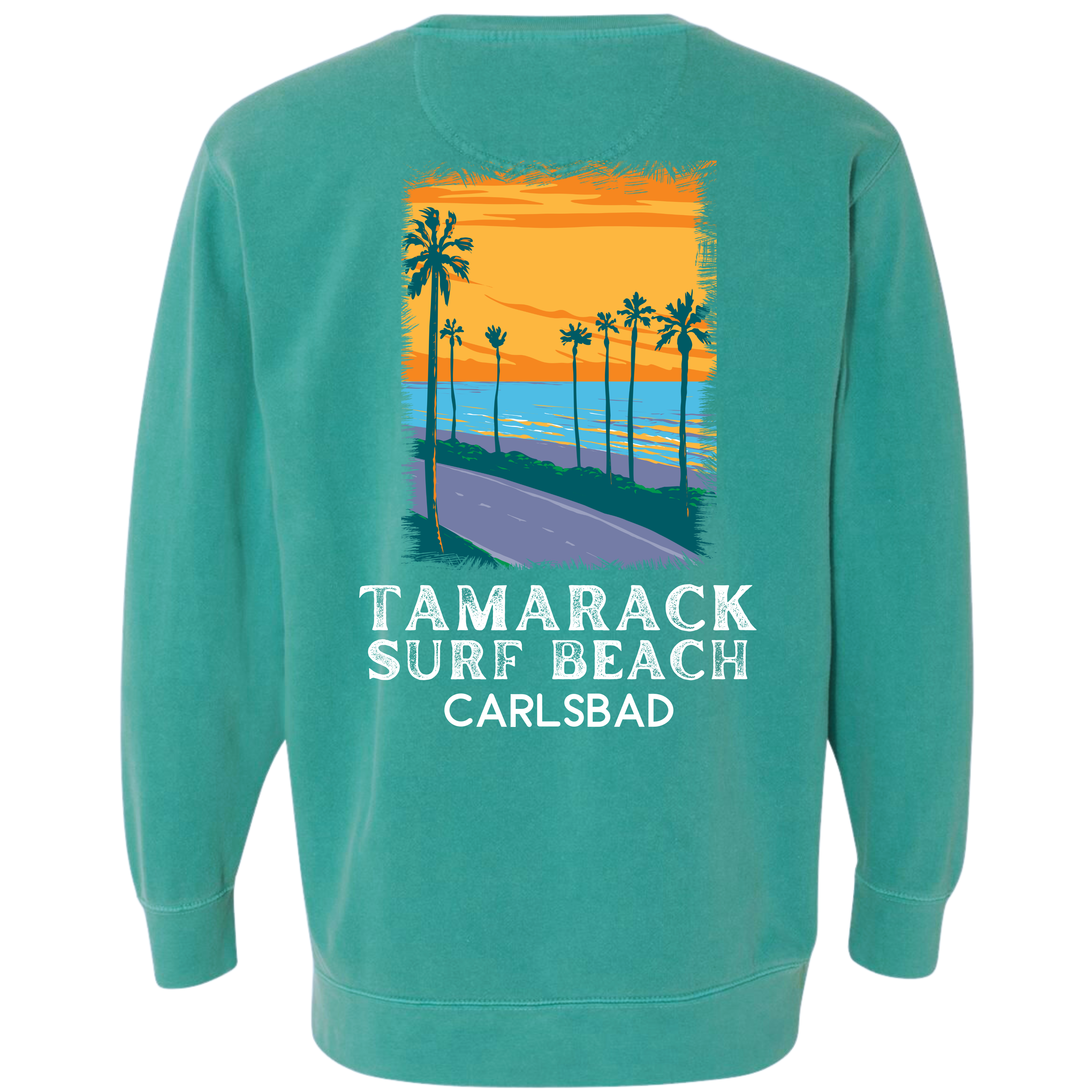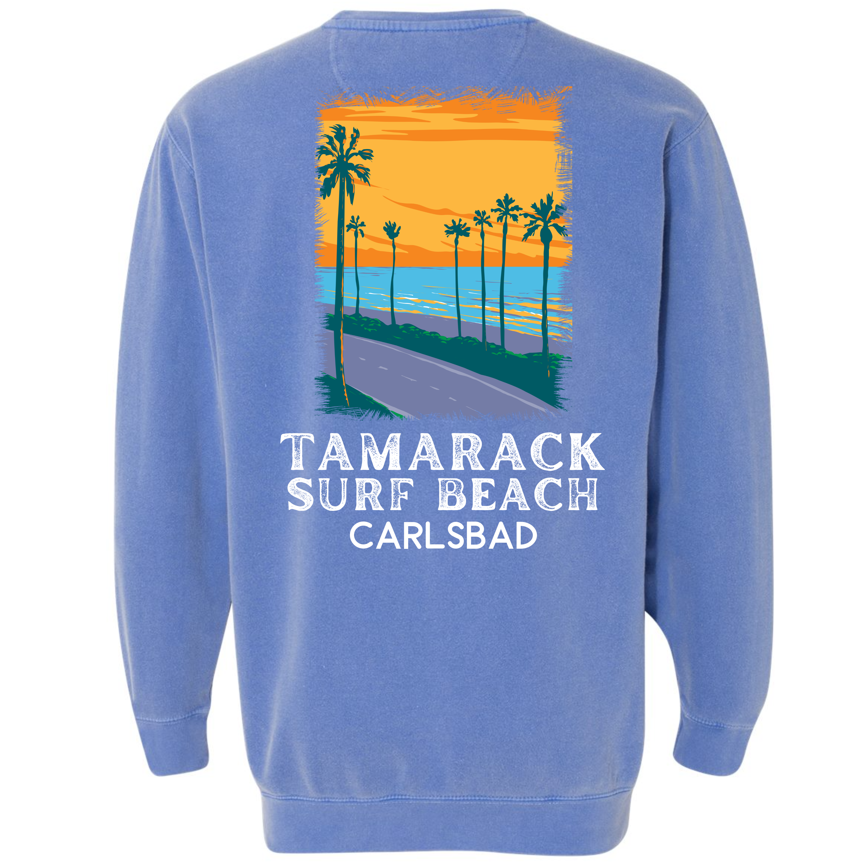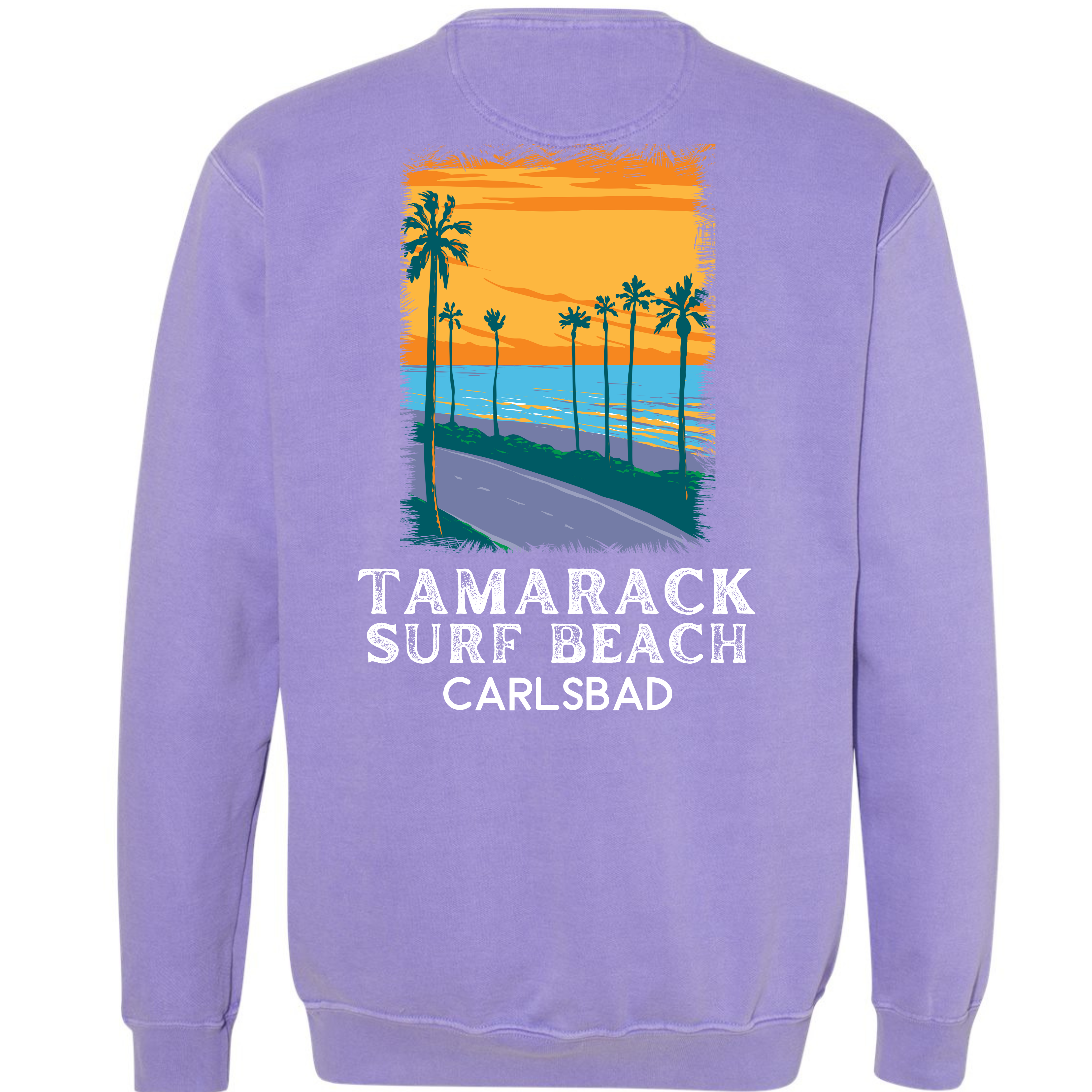 One of the best surfing beaches! This colorful Tamarack Beach in Carlsbad is from our California Beach collection. Sweatshirt is garment dyed and guaranteed to please! Our sweatshirt has an oversize / unisex fit. If you want a smaller fit, we suggest you size down since this sweatshirt is pre-shrunk due to its dye process. We guarantee it will be your favorite sweatshirt because of it's softness and comfort. Our bright design is a Direct to Garment print that will last a lifetime. Make sure you check out our size chart for exact measurements to ensure your perfect fit.